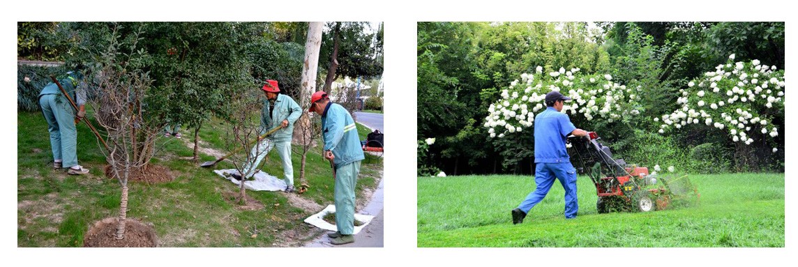 4. 草坪管理:進行草坪鋪設、修剪、打孔、補播、病蟲害防治等工作,保持草坪平整、翠綠、